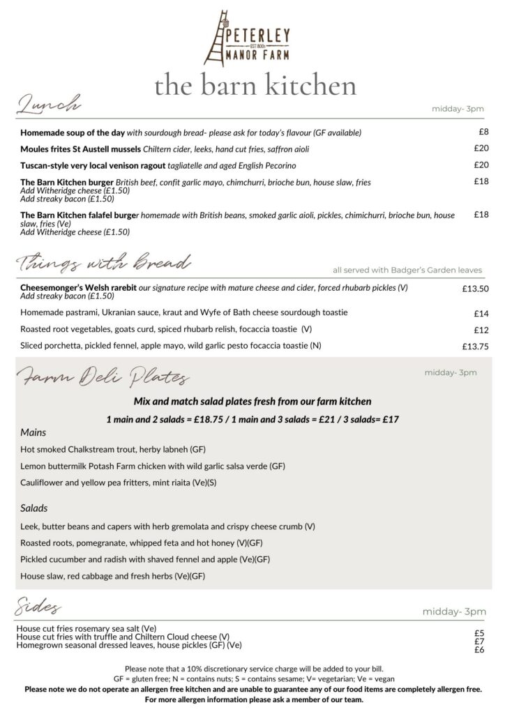 Barn Kitchen – main menu